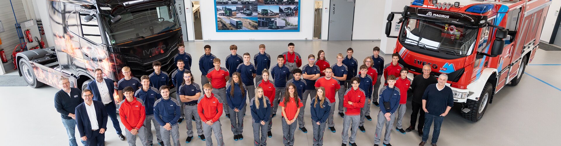 Zum 1. September 2025 haben 34 Nachwuchskräfte ihre Ausbildung beziehungsweise ihr Studium sowohl in den Gesellschaften der Iveco Group – IVECO Deutschland AG und EVCO GmbH – als auch bei der Magirus GmbH am Standort Ulm begonnen. Auch nach der Abspaltung von Magirus aus der Iveco Group wird die Berufsausbildung damit weiterhin in allen drei Unternehmen fortgeführt. Von den neuen Kolleginnen und Kollegen absolvieren 29 eine drei- bzw. dreieinhalbjährige Ausbildung in den Berufen Industriekaufleute, Fachkraft für Lagerlogistik, Konstruktionsmechaniker/in, Fahrzeuglackierer/in, Industriemechaniker/in, Elektroniker/in für Betriebstechnik oder Kfz-Mechatroniker/in System- und Hochvolttechnik. Ergänzt wird der Ausbildungsjahrgang durch drei Studierende des dualen Ulmer Modells im Bereich Fahrzeugtechnik (viereinhalb Jahre) sowie zwei Studierende der Betriebswirtschaftslehre im Rahmen eines BA-Studiums.
