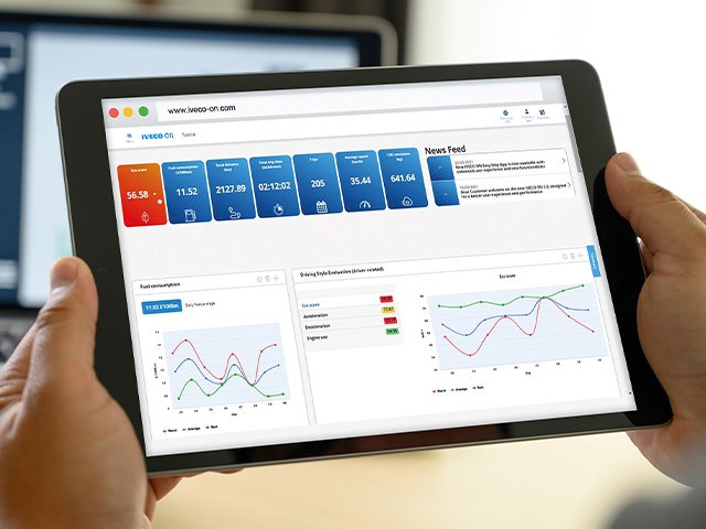 Dank der IVECO Connectivity Box und des IVECO ON Kundenportals profitieren Sie von dynamischem Monitoring und Analyse in Echtzeit – für maximale Transparenz und Effizienz.