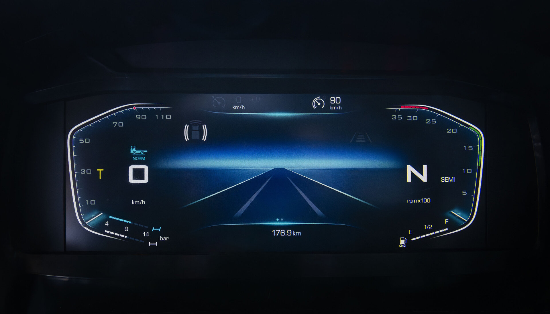 Das neue 10-Zoll-Kombiinstrument ermöglicht dem Fahrer, alle Anzeigen und Warnleuchten auf einen Blick einzusehen.